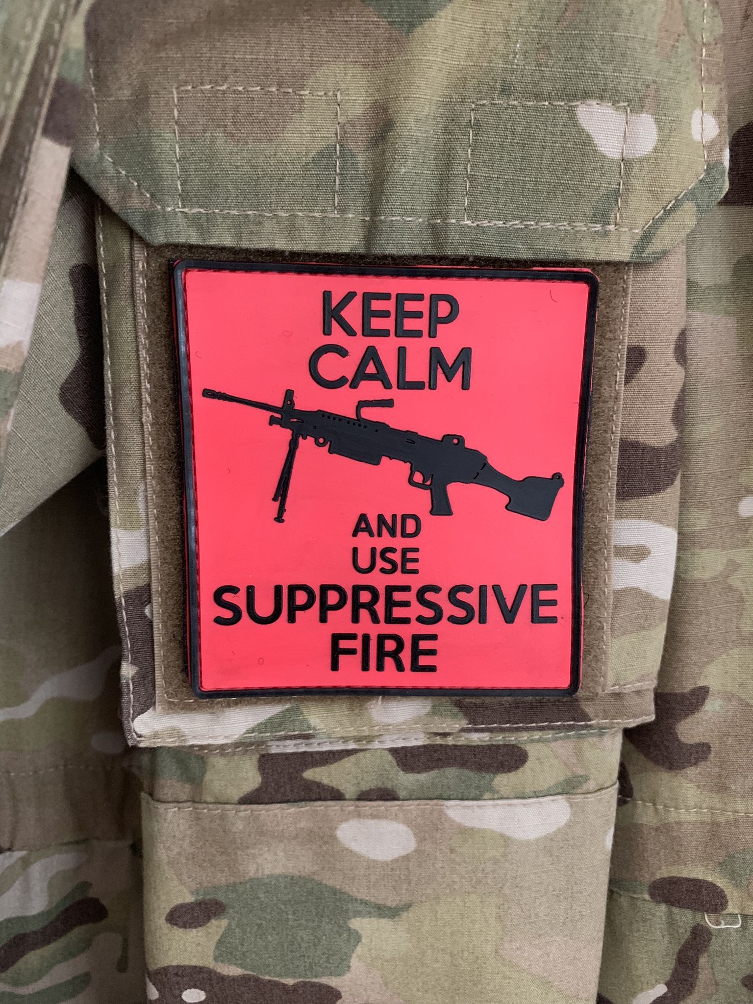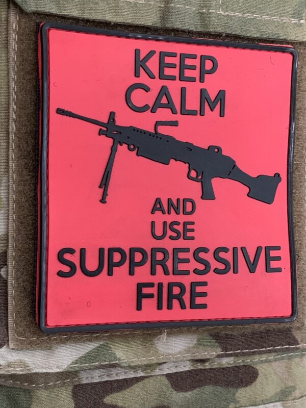 3D MORALE PATCH: „Keep calm and use suppressive fire“, black powder version.