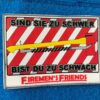 Farben: Dunkelrot, schwarz, gelb, weiß. Format: 80mm im Durchmesser. Hakenklettrückseite und gratis Flauschklettfeld.