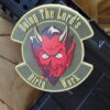 Farben: Rot,schwarz,tan,grau,weiß.Format: 75x55mm. Velcroback
