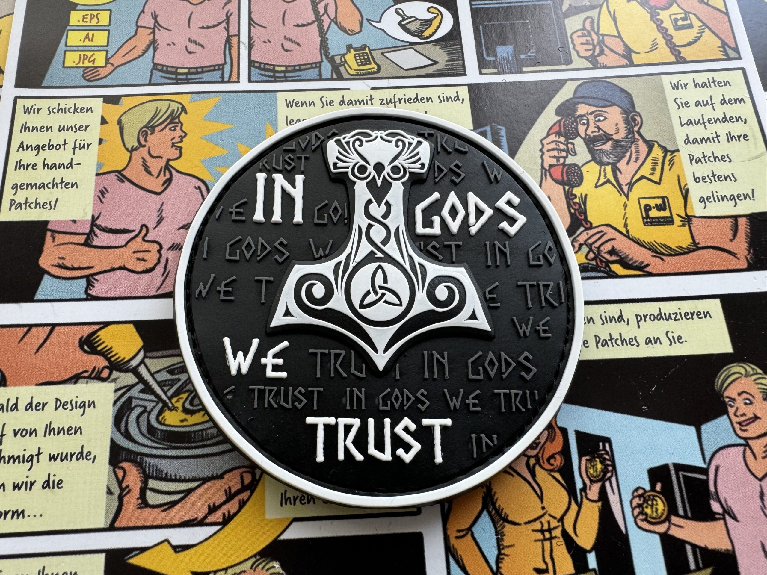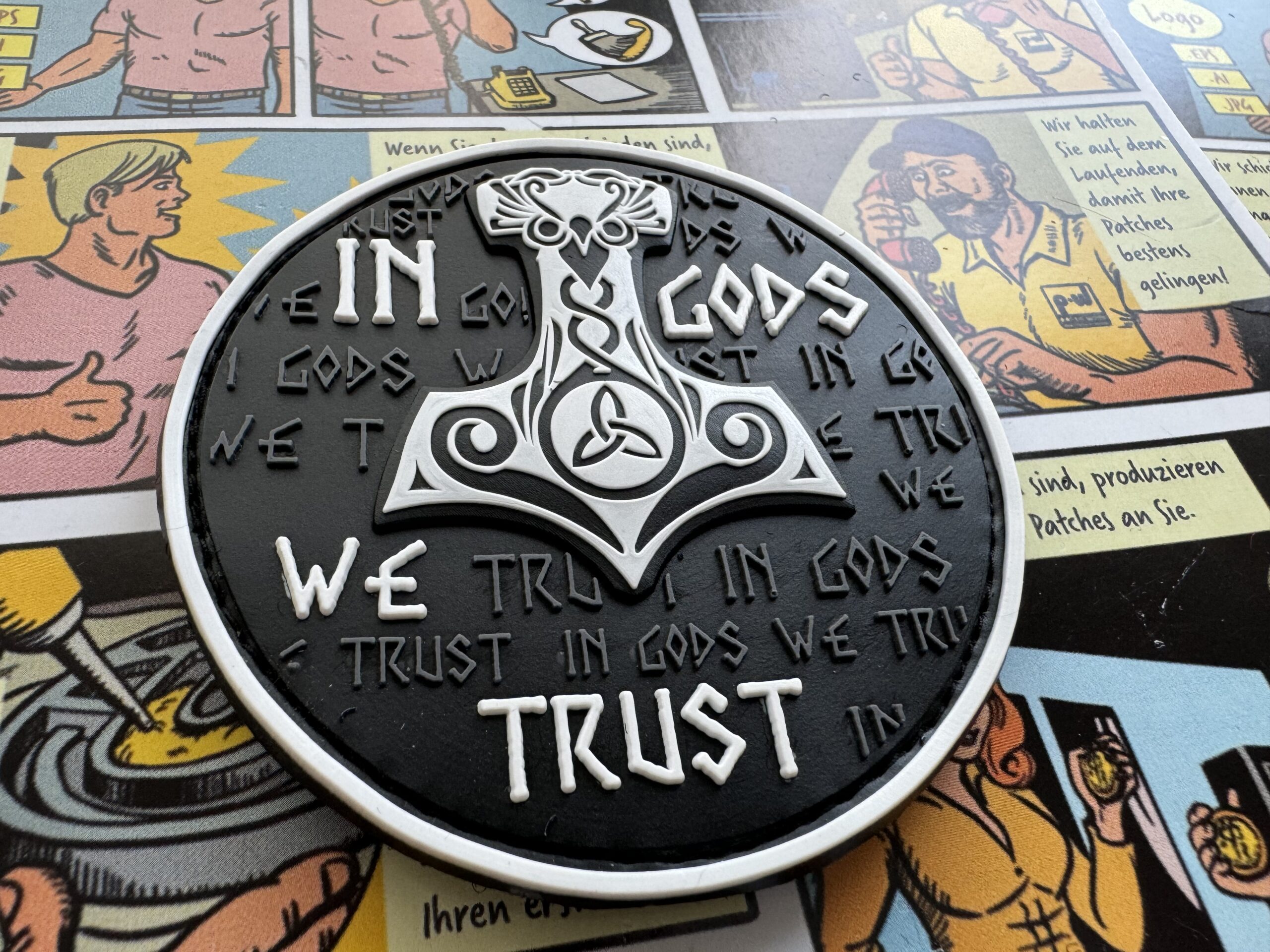 3D Rubber MORALE PATCH: „In Gods we trust“ segelweiß