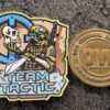 Farben: Orange, Schwarz, Grau, Braun, Beige. Format: 66mm Durchmesser. Mit Hakenklettrückseit und mit passendem Flauschklett.