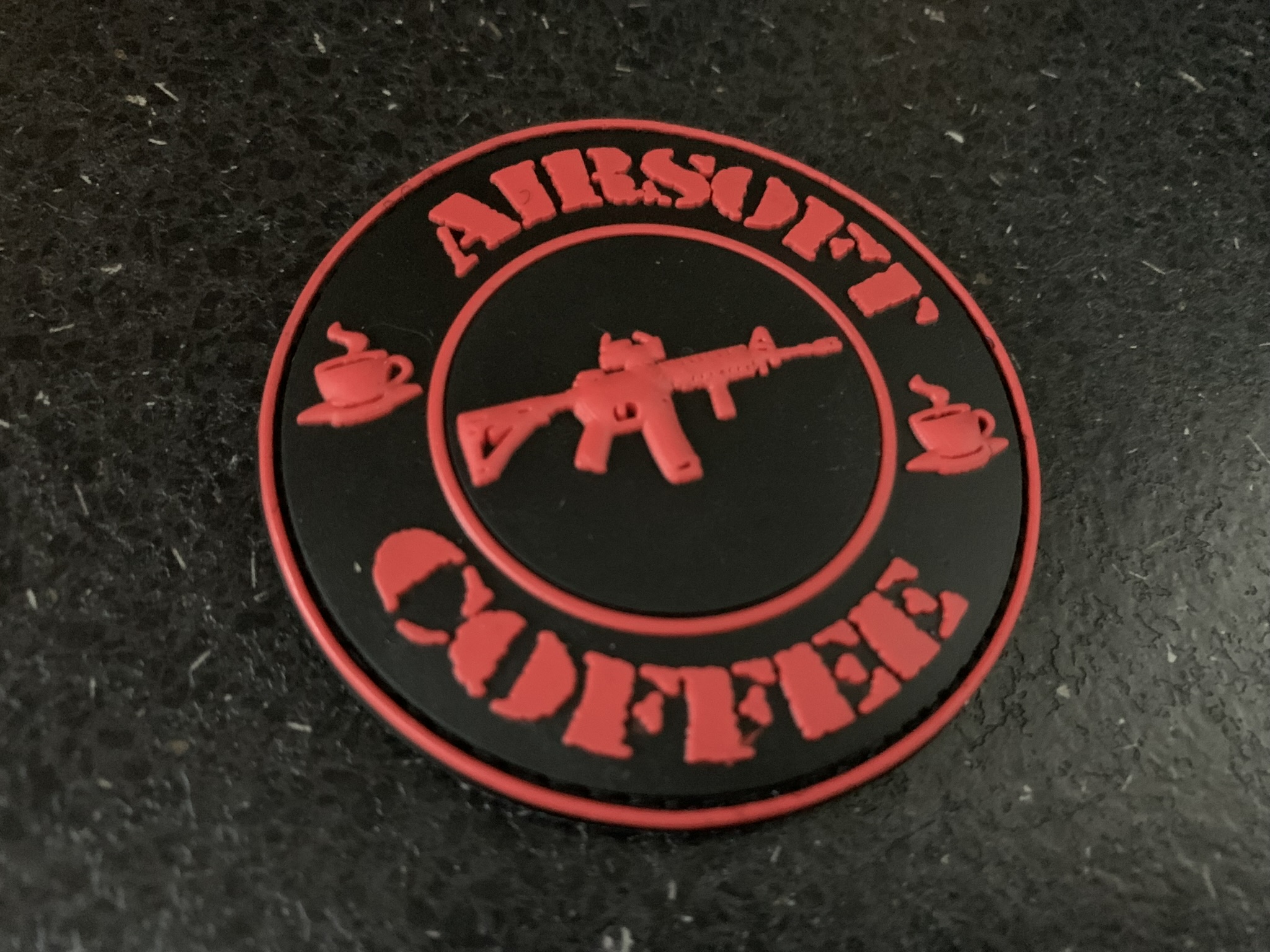 3D Rubberpatch „AIRSOFT & COFFEE“ rot auf schwarz