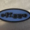 Faben: Schwarz und blau. Format: 60mm x 25mm. oval. Mit Hakenklettrückseite und mit passendem Flauscheld.