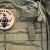Farben: Schwarz auf Desert, 3D. Format: 75mm Durchmesser. Mit Hakenklettrückseite und passendem Flauschfeld