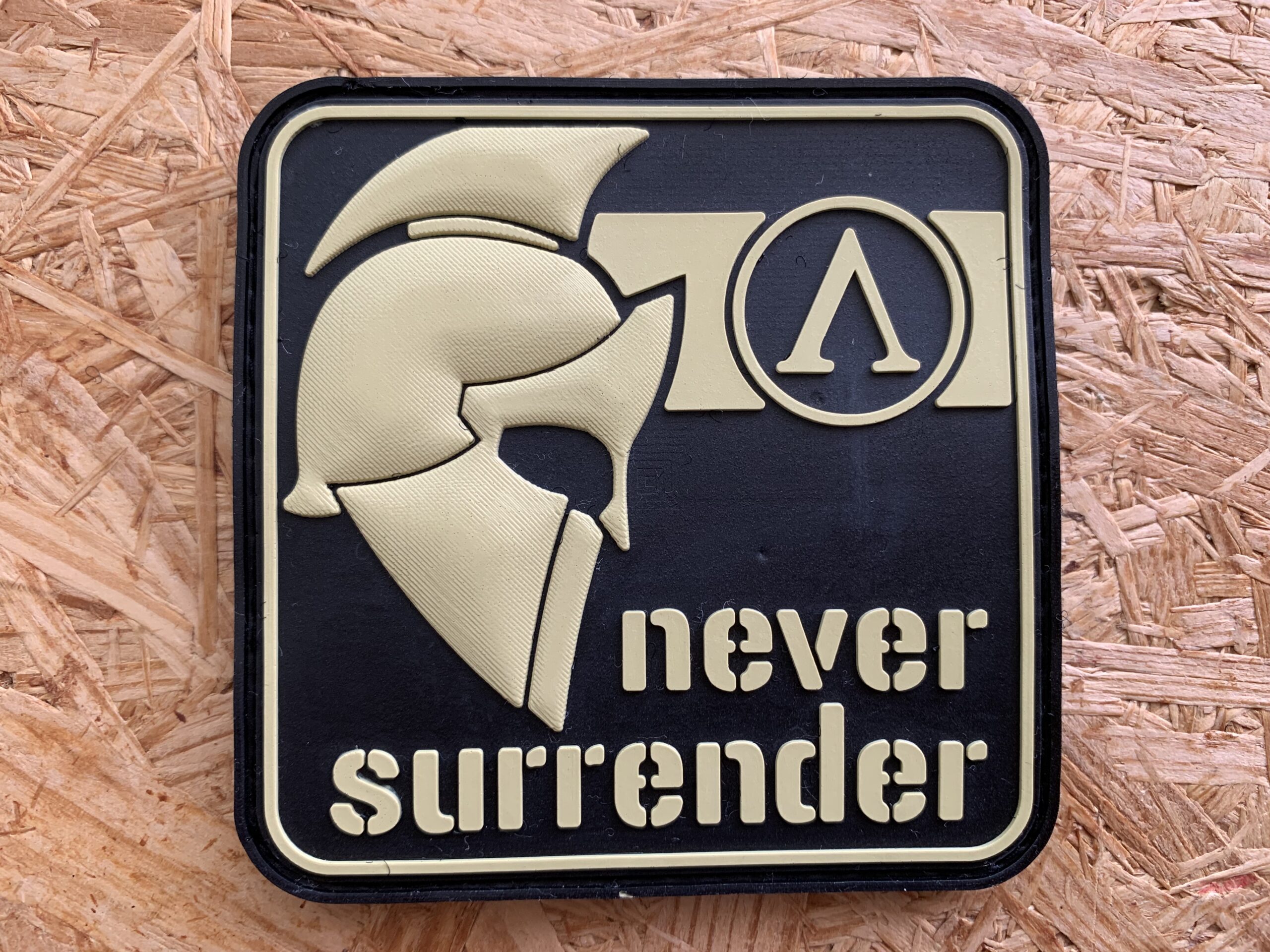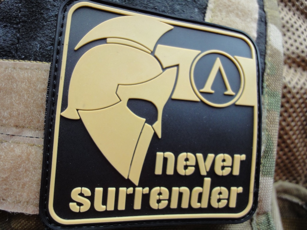 3D- Rubberpatch: NEVER SURRENDER in desert-brwon.