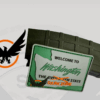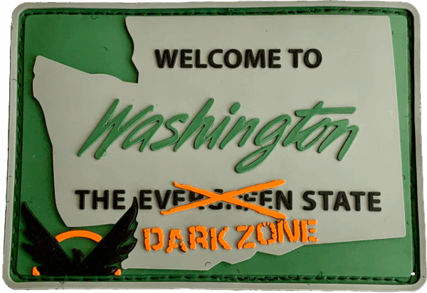 Farben: Grün, grau, rot, schwarz. Format: 10x7cm. Hakenklettrücken mit gratis Flauschklettfeld