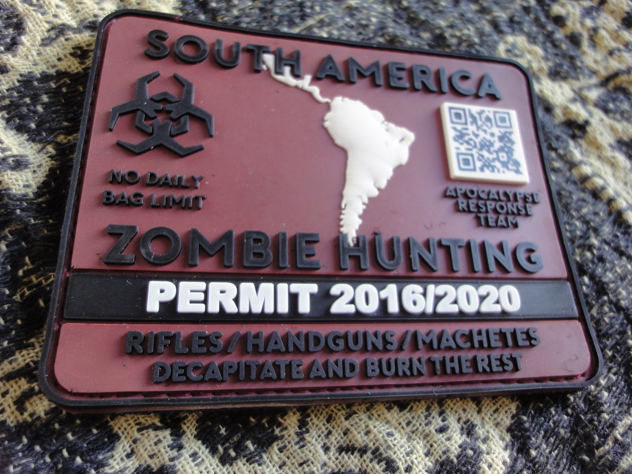3D Rubberpatch:“ZOMBIE HUNTING PERMIT SOUTH AMERICA“: