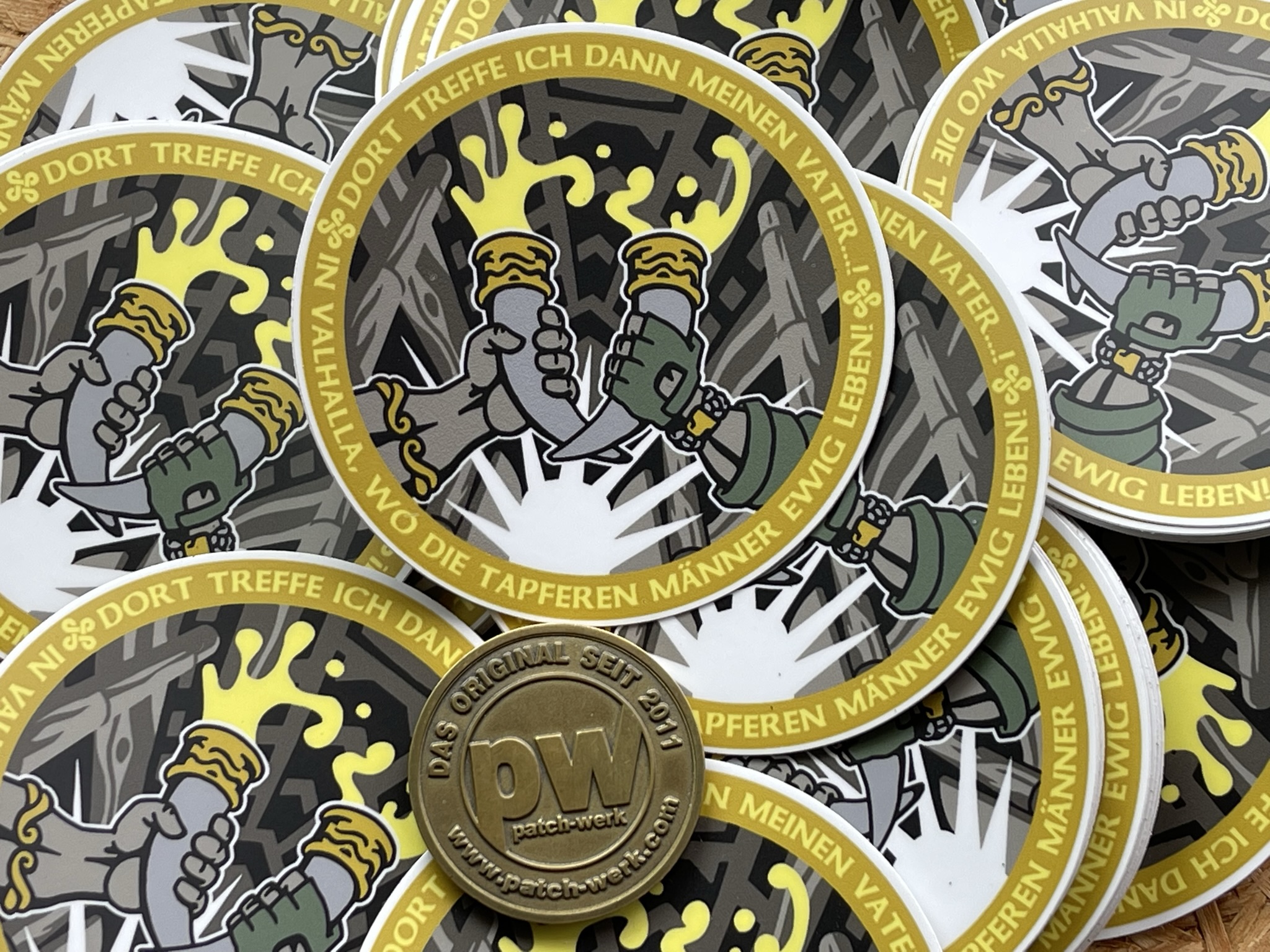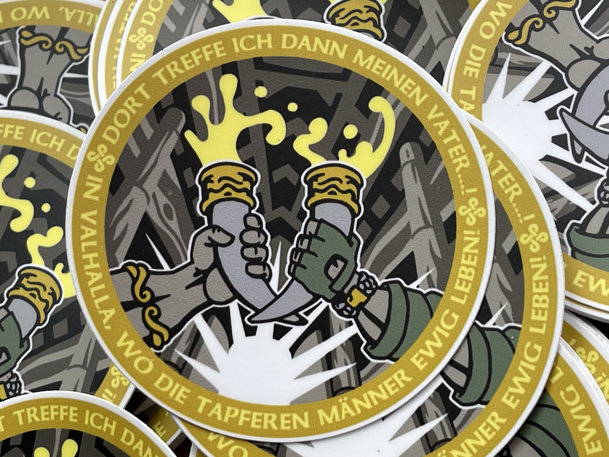 Das Wikingergebet umgesetzt als episches Motiv! Wer den passenden Aufkleber zum Patch sucht, oder einfach nur den Aufkleber will, findet hier echte deutsche Qualitätsarbeit. Diese Aufkleber werden direkt in Seligenstadt gefertigt, sind hochqualitativ und unterscheiden sich deutlich durch Ihre Robustheit und das verwendete Material von den üblichen „Stickern“.