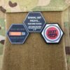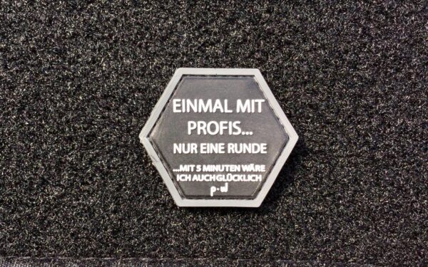 Farben: Schwarz und grau! Format: Sechseckig, 2 cm Kantenlänge. Velcrorücken.