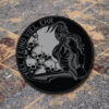 Farben: Schwarz und dunkelgrau. Format: 90mm im Durchmesser. Velcrorücken