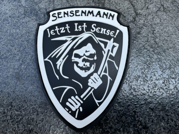 Rubberpatch: „SENSENMANN“, weiß auf schwarz